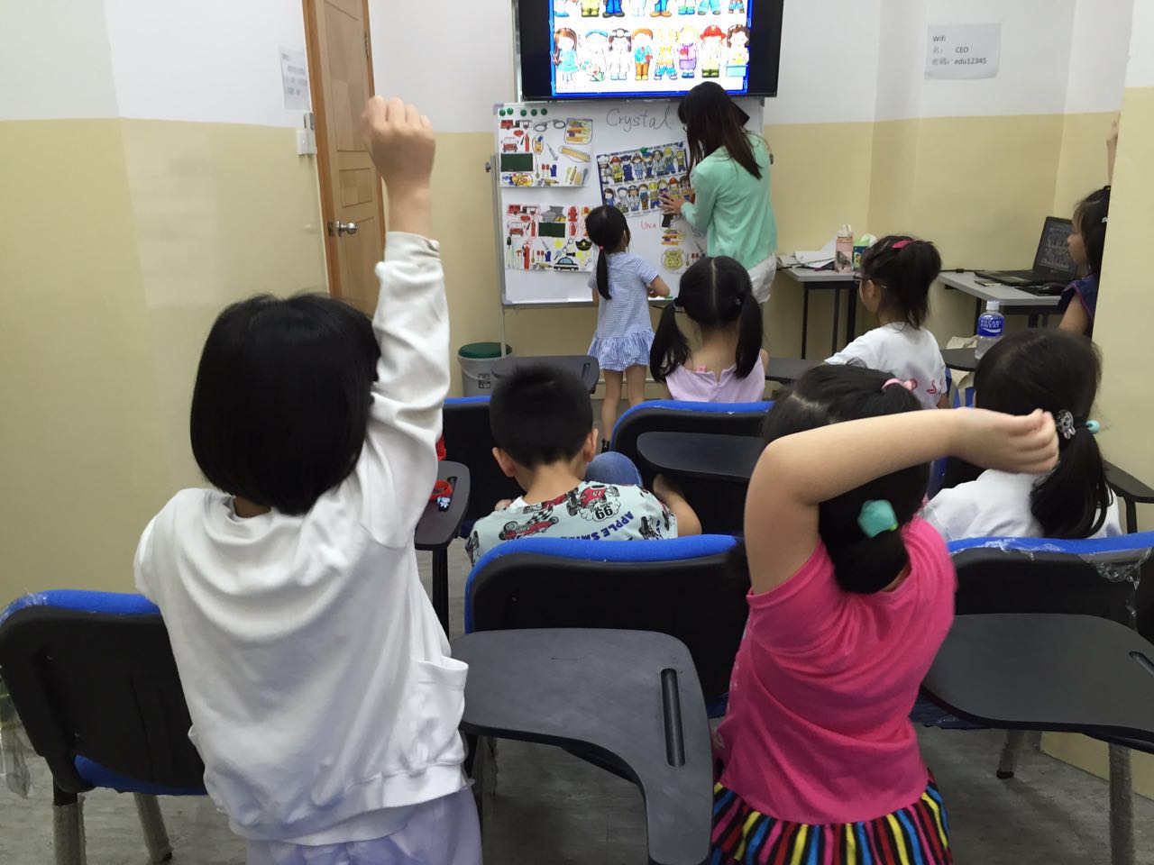 又到左愉快既週六大小朋友都棃學英文、玩遊戲啦! 系導師帶領下睇距地學得幾開心 教材豐富 ,睇下卡通片 又可以從中學到生字、句子 學識講話甘易。最後仲玩埋英語遊戲添 ,你都快D一齊棃啦 !!!